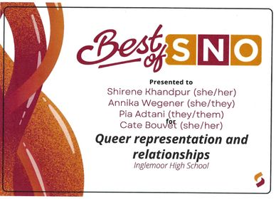 The Best of SNO Award was won by Shirene Khandpur for her article "Queer Representation and Relationships" on February 19, 2024. It is given by Student Newspapers Online (SNO) to recognize outstanding student journalism. The award showcases the best work from the more than 3,000 student news sites that use SNO Sites software and receives nearly 14,000 submissions for Best of SNO each year. The Best of SNO award is highly competitive and selective, with only about 10% of submissions receiving recognition. Reviewers look for stories that are engaging, concise, relevant, and polished, and that follow sound journalistic practices. They also expect stories to appeal to an audience beyond the school community and to provide a larger context.